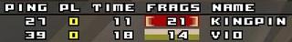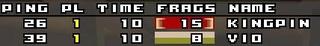 He made the first frag but i came back with a nice 4:1 lead. I attacked him at RA from the lower positon (the two healthboxes). That was the big mistake. He got a 8:4 lead and then it was pretty much over..